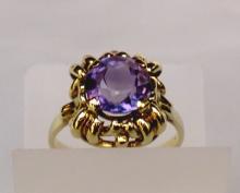 hübscher Amethystring in 585/- Gelbgold Ringweite 51 Steingröße 7,8mm im Durchmesser