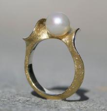 Silberring teilvergoldet mit Perle